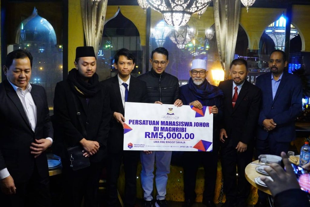 Sumbangan YAB Menteri Besar Johor, Dato’ Onn Hafiz Ghazi juga telah disampaikan, manakala MAINJ turut menyalurkan RM5,000 bagi menyokong aktiviti dan pengurusan Persatuan Pelajar Johor di Maghribi yang baru ditubuhkan.