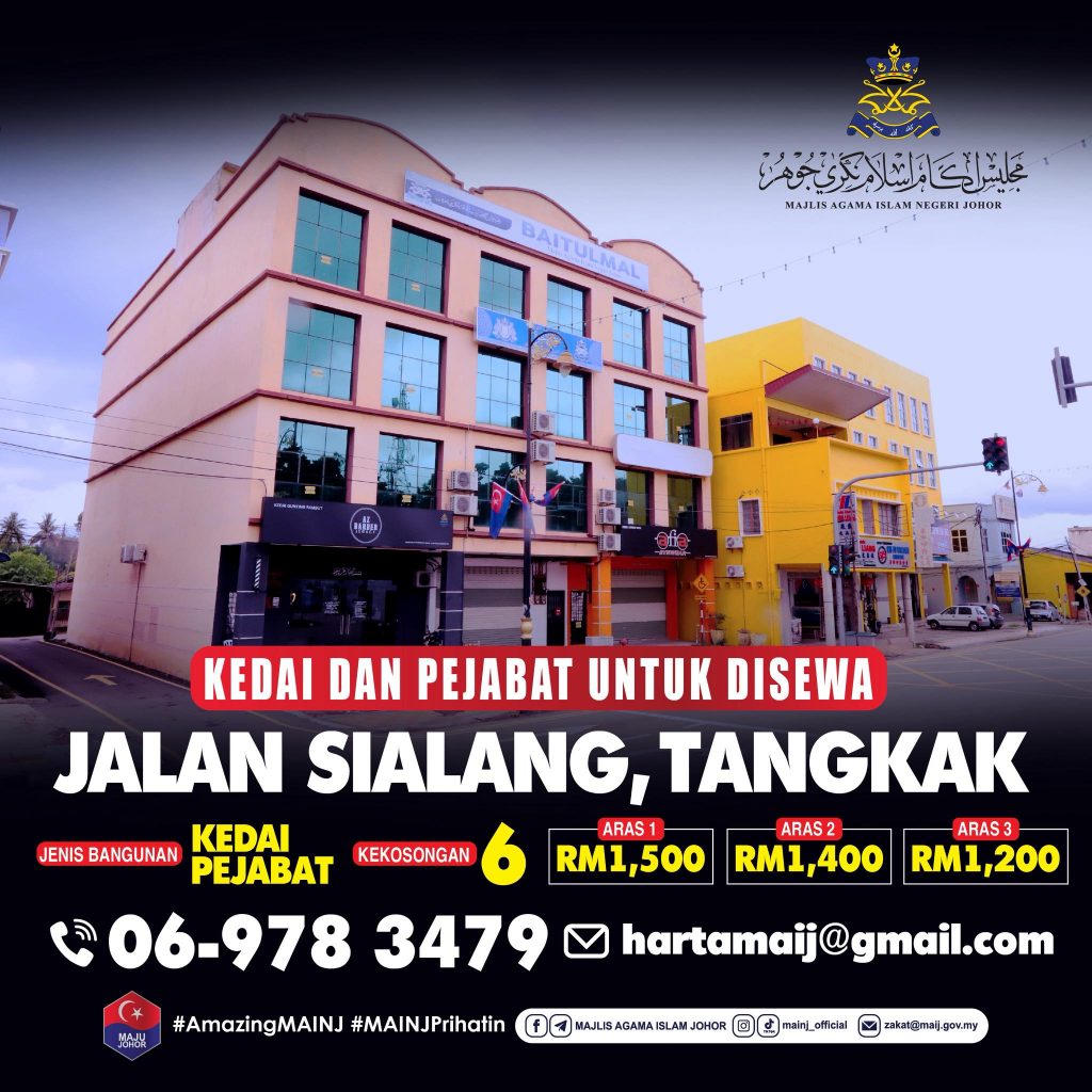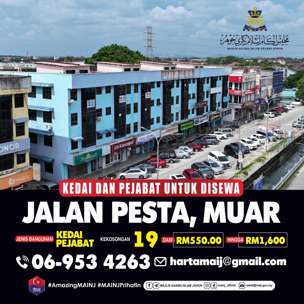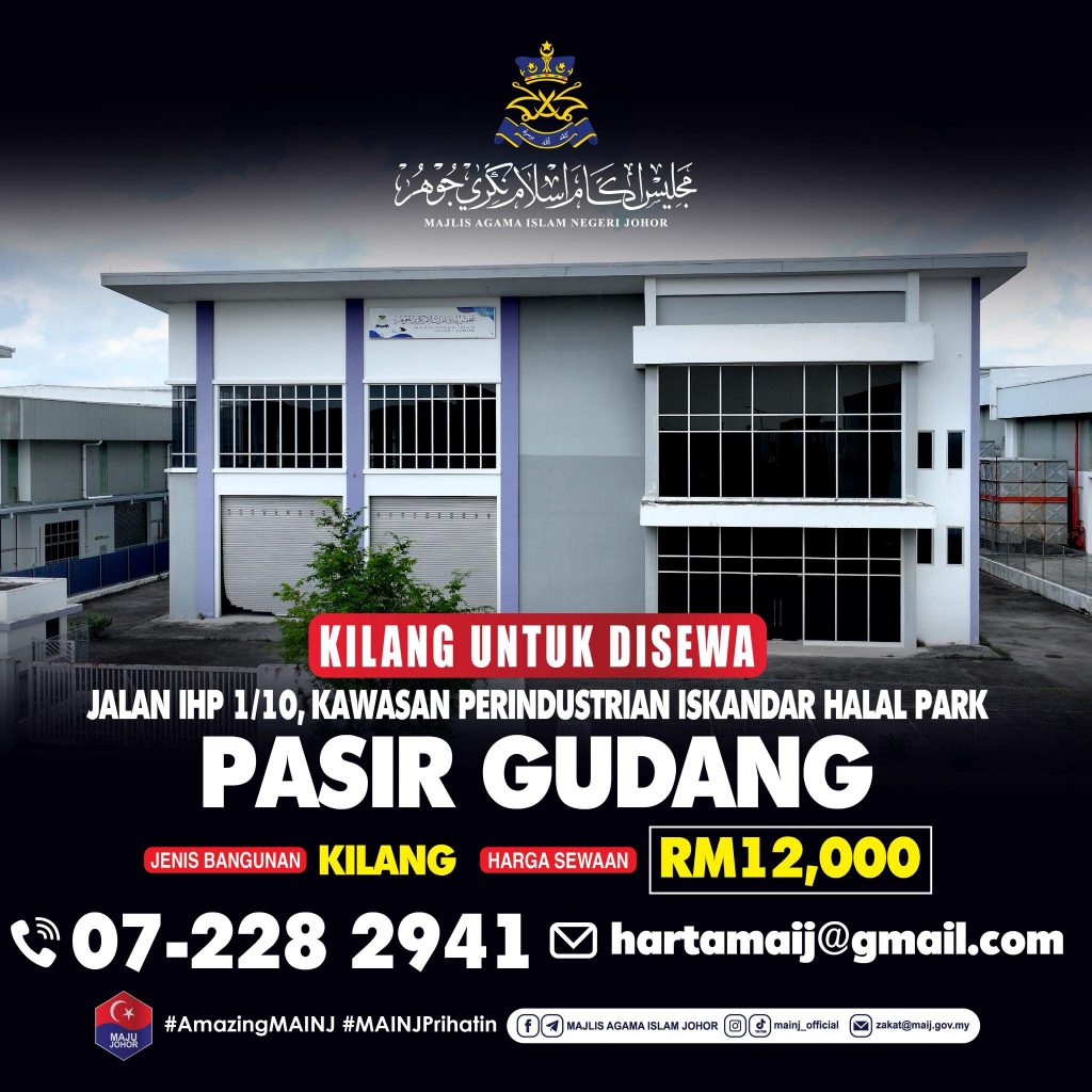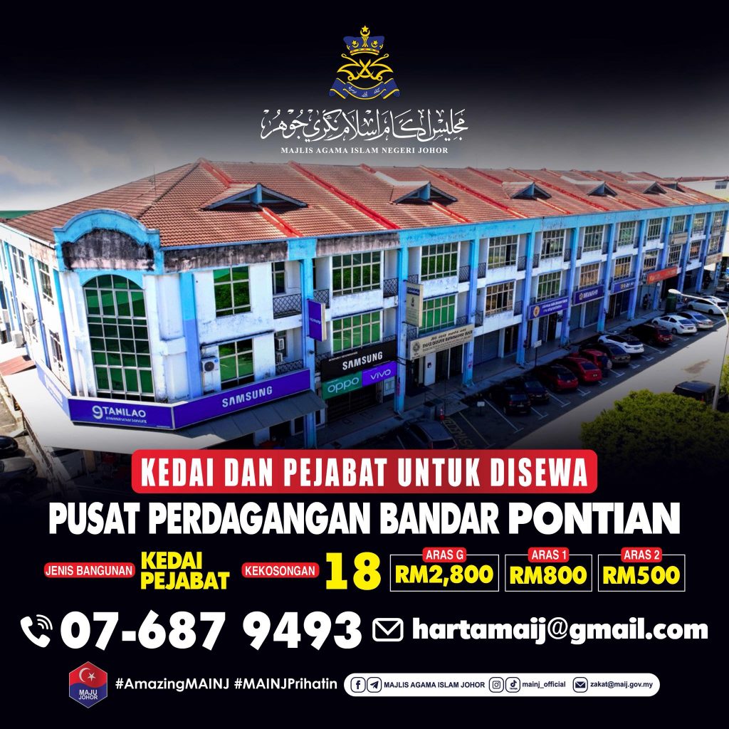 Majlis Agama Islam Negeri Johor (MAINJ) membuka peluang sewaan unit kedai, pejabat dan kilang sebagaimana maklumat berikut.