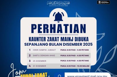 Sepanjang bulan Disember, kaunter MAINJ akan beroperasi setiap hari, termasuk hujung minggu dan cuti umum. Waktu operasi adalah seperti berikut: Isnin – Jumaat: 8.00 pagi – 5.00 petang Sabtu & Ahad / Cuti... READ MORE